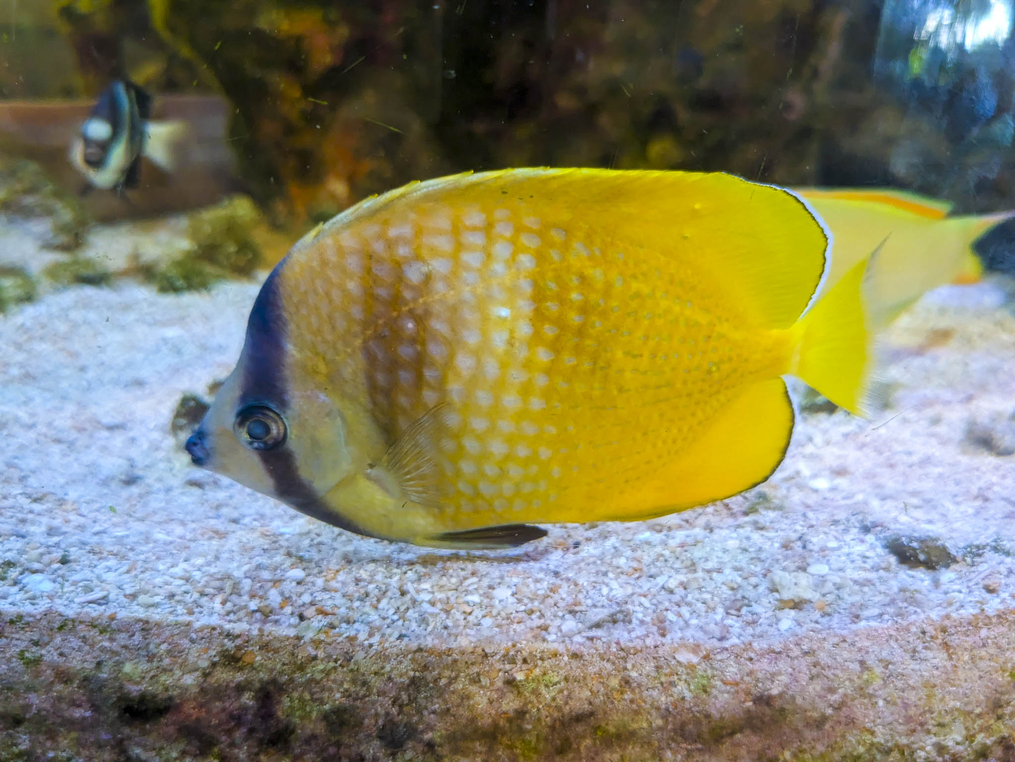 沖縄のサンゴ礁で普通に見られるチョウチョウウオの仲間。単独で行動することが多い。